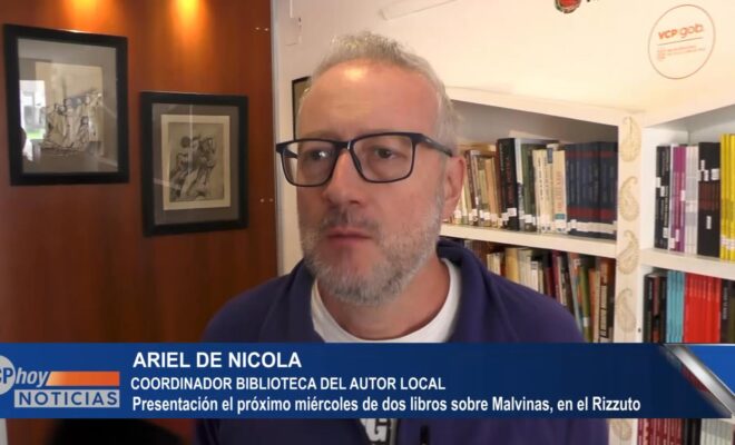 ARIEL DE NICOLA: tenemos este miércoles a las 19hs. en el salón Rizutto, la presentación de dos ejemplares, uno tiene que ver con Malvinas que va dirigido al público en general, es un libro muy emotivo que toca de cerca lo vivido en las islas y el otro es un libro que tiene más que ver con las escuelas, va dirigido a los estudiantes para que conozcan como fue el conflicto de Malvinas.